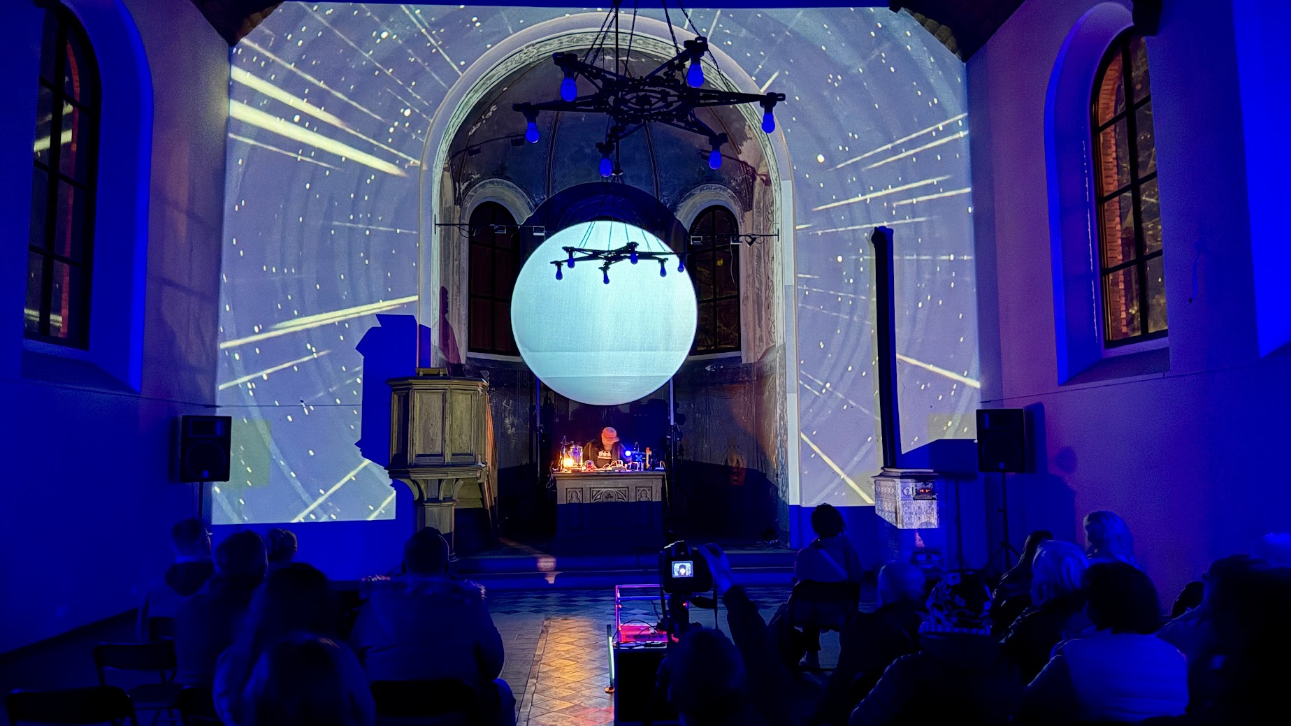 Za nami audiowizualny pokaz Bartosza Posackiego, który wprowadził widzów w świat eksperymentalnych brzmień i obrazów powiązanych z architekturą dawnego neogotycki kościoła ewangelickiego.