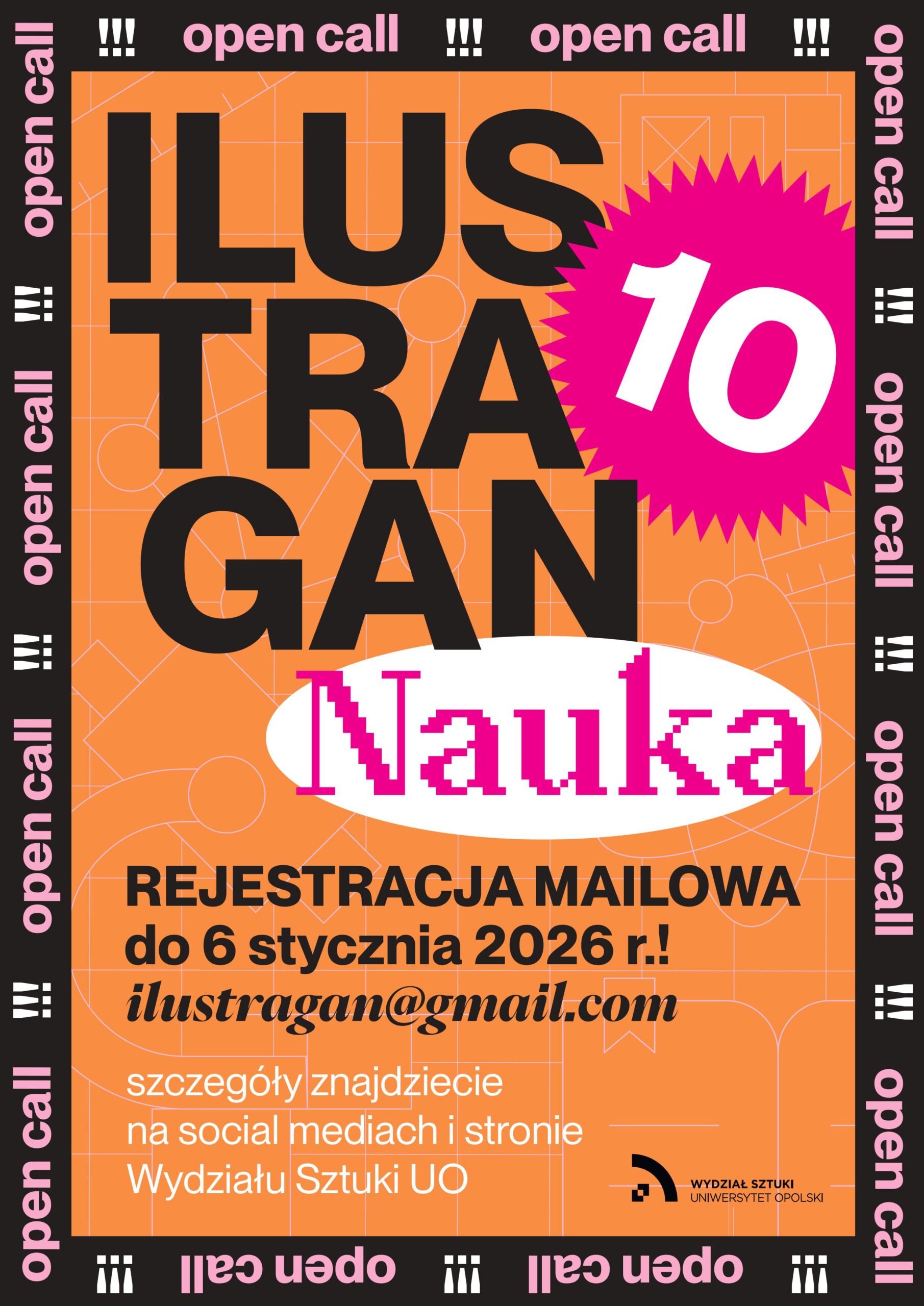 Dziś, w 2025 roku świętujemy 10 lat naszego ilustracyjnego projektu. Przy tak wyjątkowej okazji, naszym partnerem nie może być nikt inny tylko… Uniwersytet Opolski! Tak jest! Jubileuszową edycję tworzymy z naszą uczelnią pod hasłem: ILUSTRAGAN 10: NAUKA