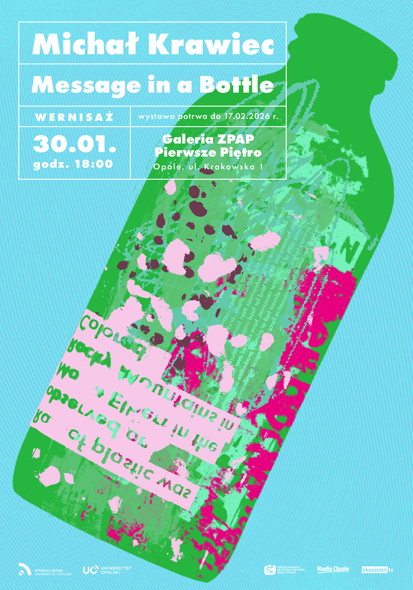 Zapraszamy na wyjątkową, bo wystawę Michała Krawca pt. ”Message in a Bottle”. Wernisaż odbędzie się w piątek 30.01.2026 r. o godz. 18:00 w Galerii ZPAP Pierwsze Piętro.