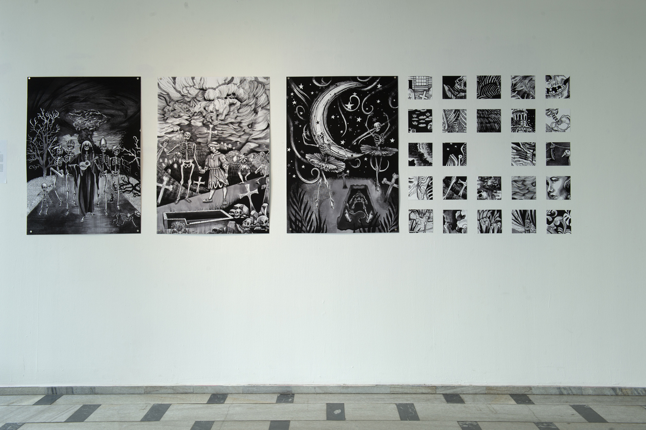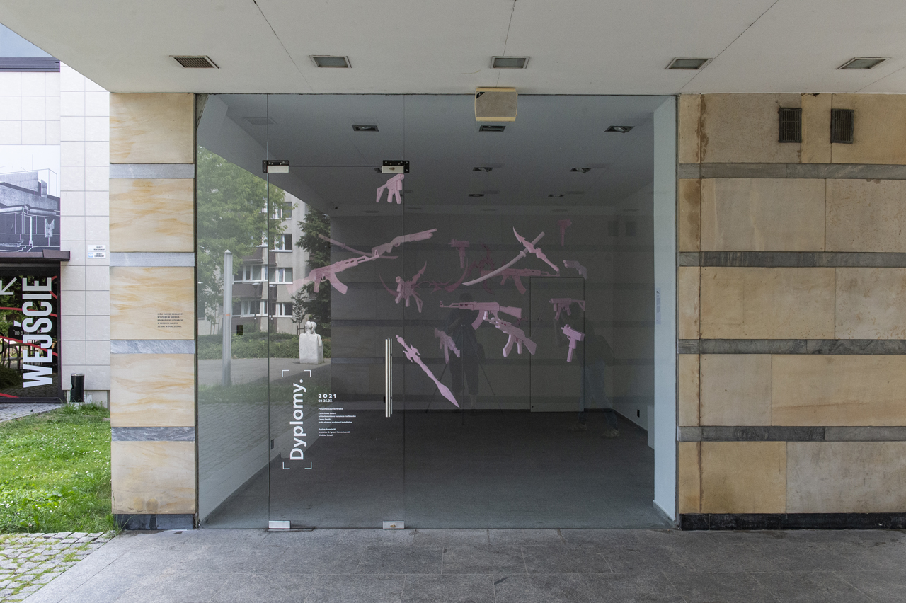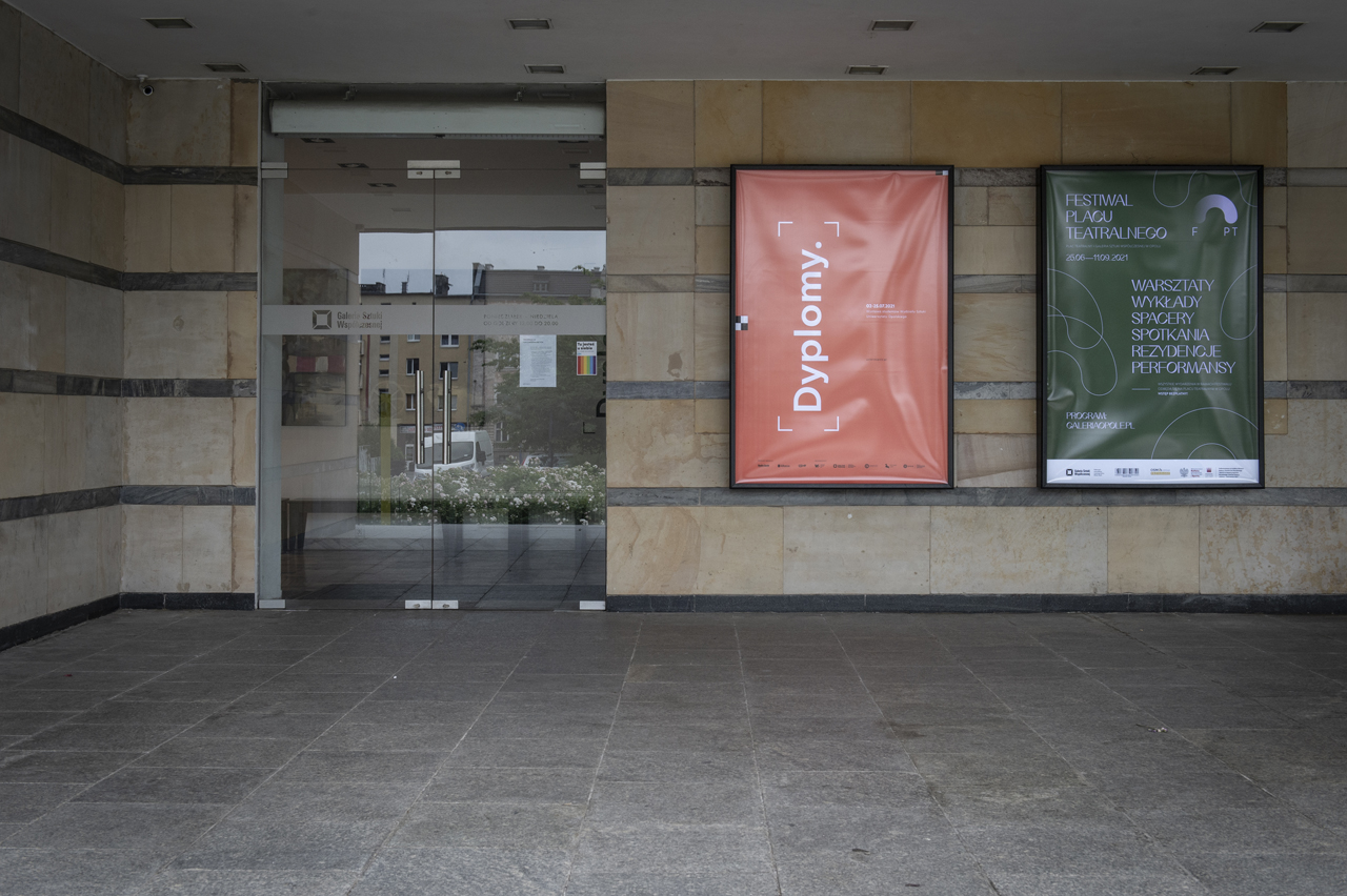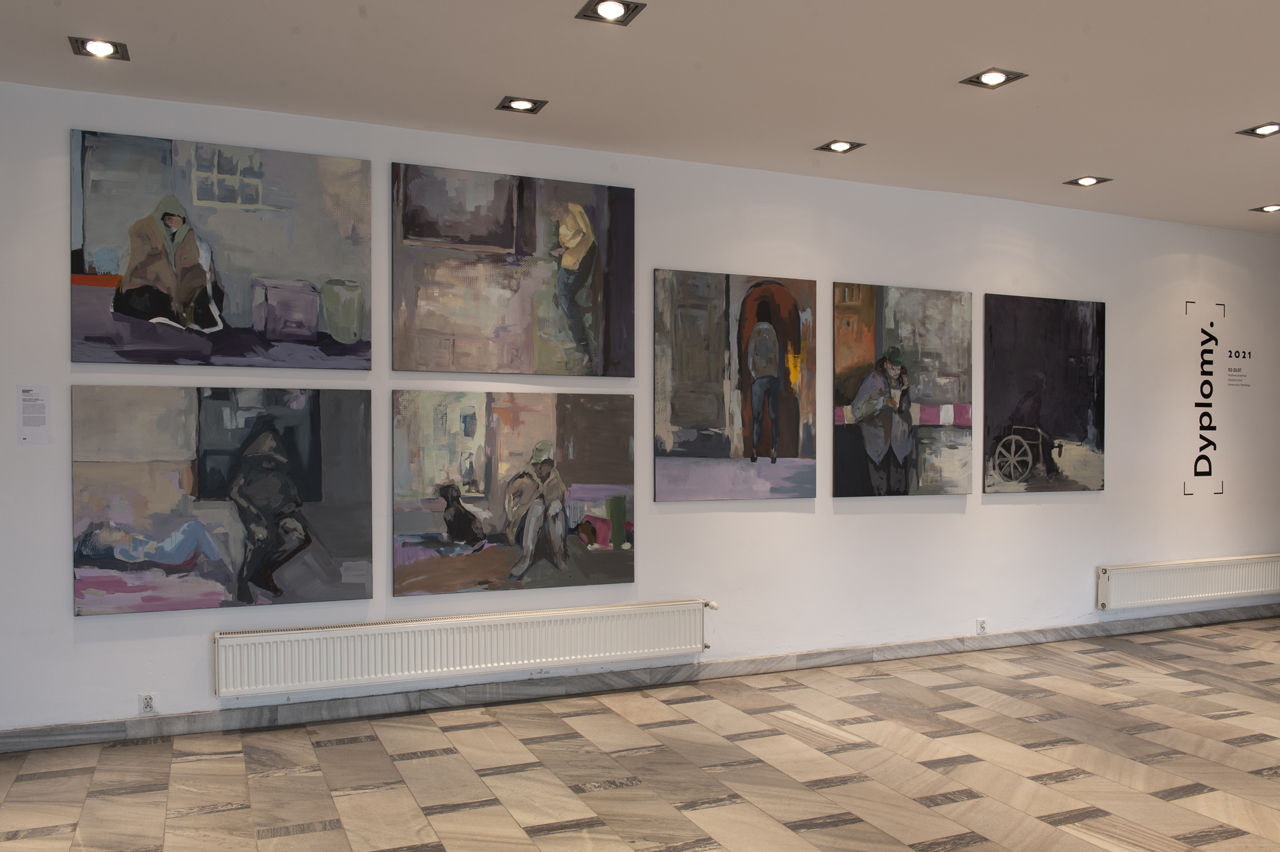 Obrony dyplomów w I terminie (początek lipca) odbywają się z reguły w Galerii Sztuki Współczesnej, pośród zaaranżowanej ekspozycji. Komisja składa się ze wszystkich promotorów i recenzentów, obrony trwają najczęściej dwa dni a wieńczy je wernisaż wystawy dyplomowej. Obrony w II terminie odbywają się w połowie września, w Collegium Artium.