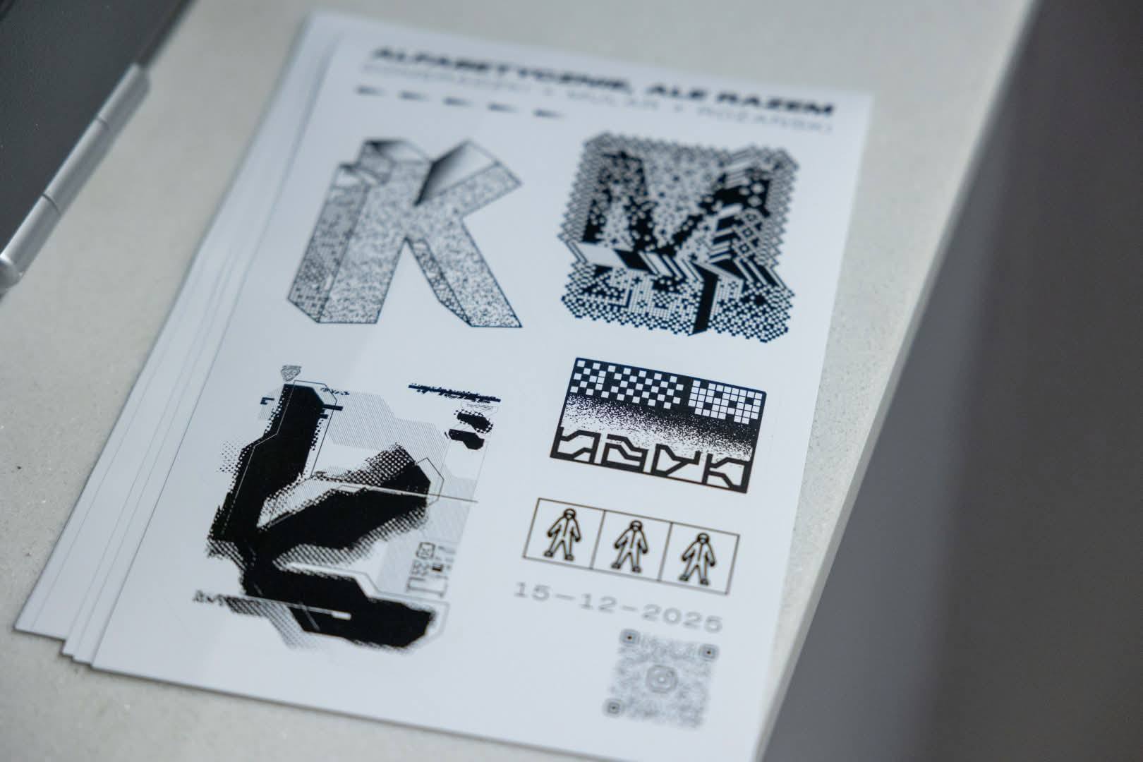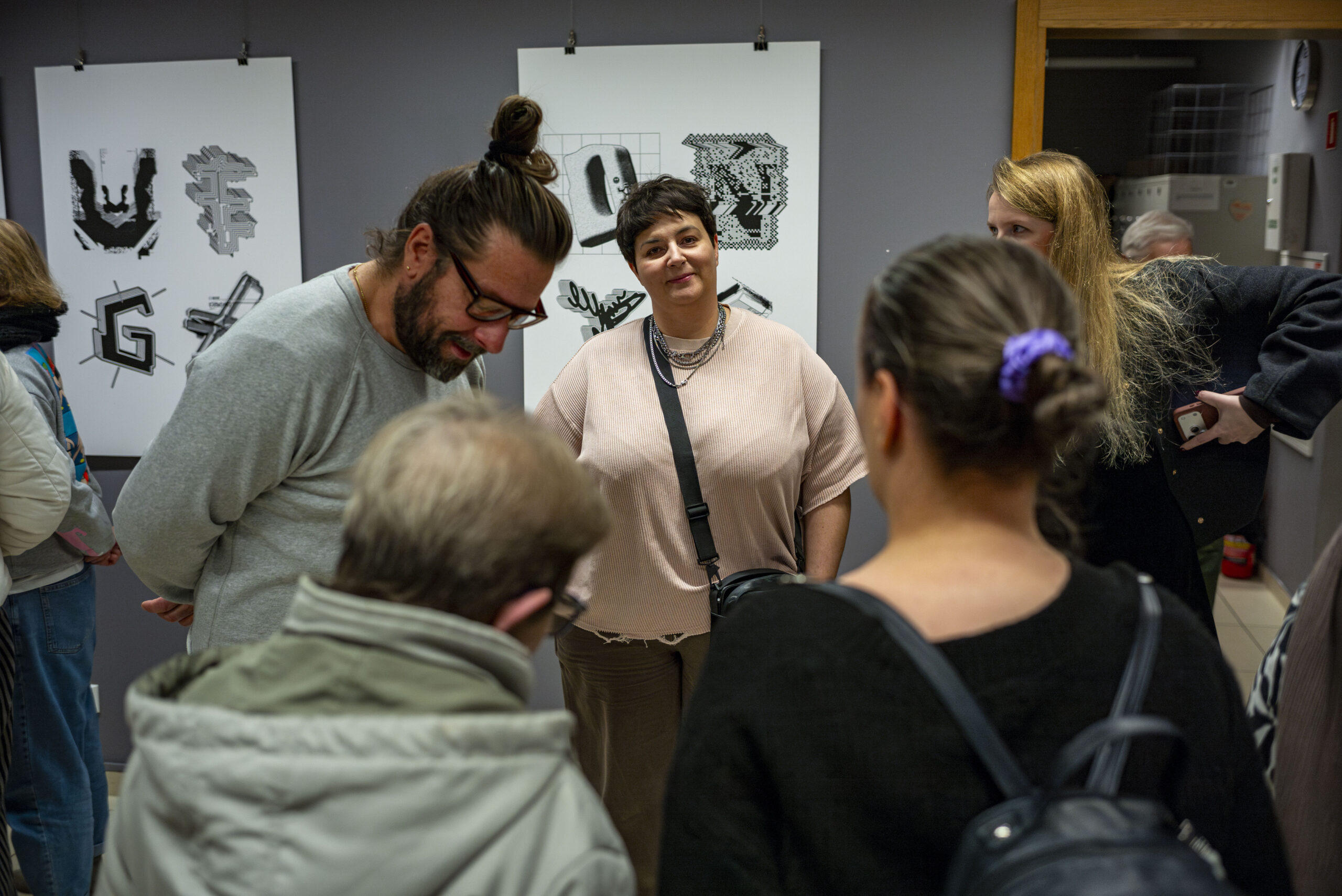Choć alfabet pozostaje tutaj strukturą porządkującą, artyści wizualnie interpretują poszczególne litery przez pryzmat własnych zainteresowań i aktualnych poszukiwań twórczych. Projekt otwiera dialog z formą, fakturą, rytmem i skojarzeniem, każdy ze znaków stał się samodzielną, oderwaną od źródłowego systemu opowieścią wizualną. Wystawa jest też zaproszeniem do zatrzymania się przy samej formie liter, do przyjrzenia się znanym nam kształtom, ale przeniesionym ze sfery szybkiego, intuicyjnego patrzenia w stronę dłuższego doświadczenia estetycznego. Alfabet na co dzień może działać dla nas niemal przezroczysto – jako oczywisty mechanizm komunikacji. A przecież język i pismo należą do najważniejszych ludzkich osiągnięć.