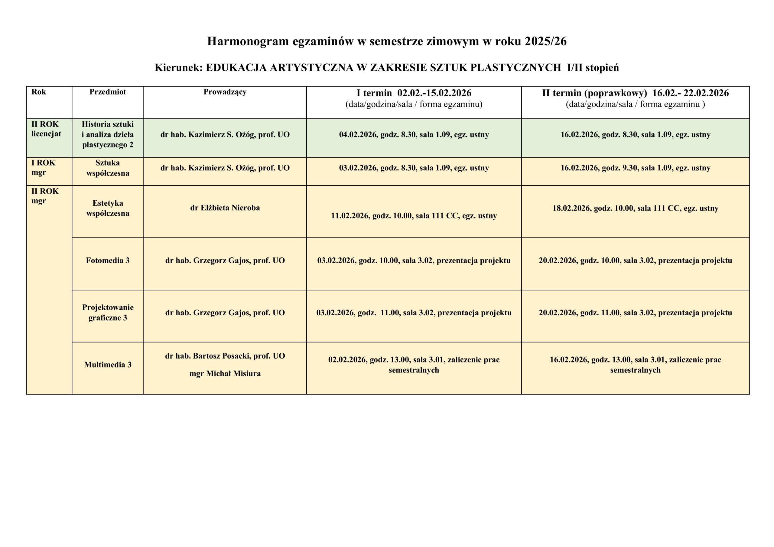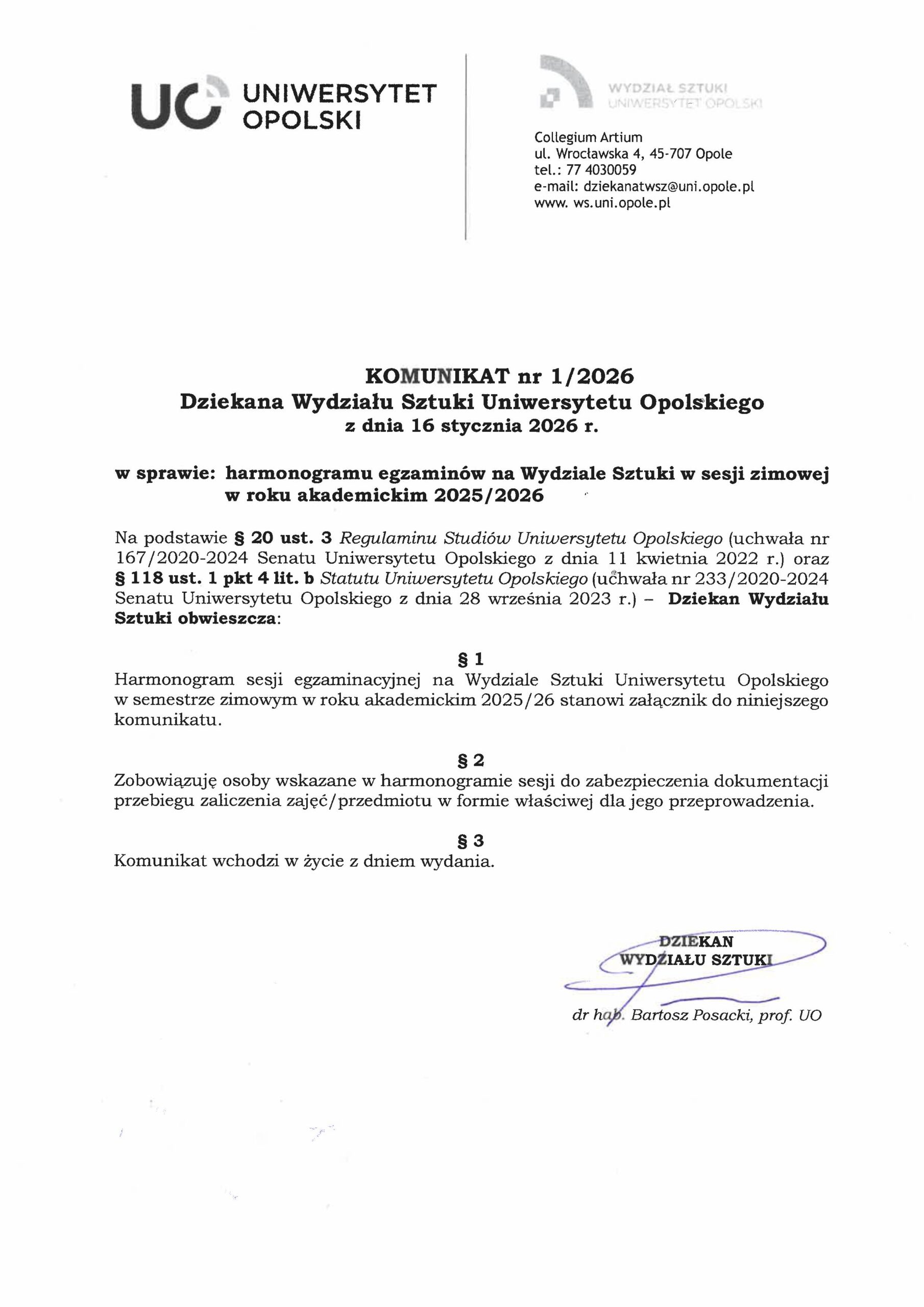 Harmonogram sesji egzaminacyjnej w semestrze zimowym 2025/2026